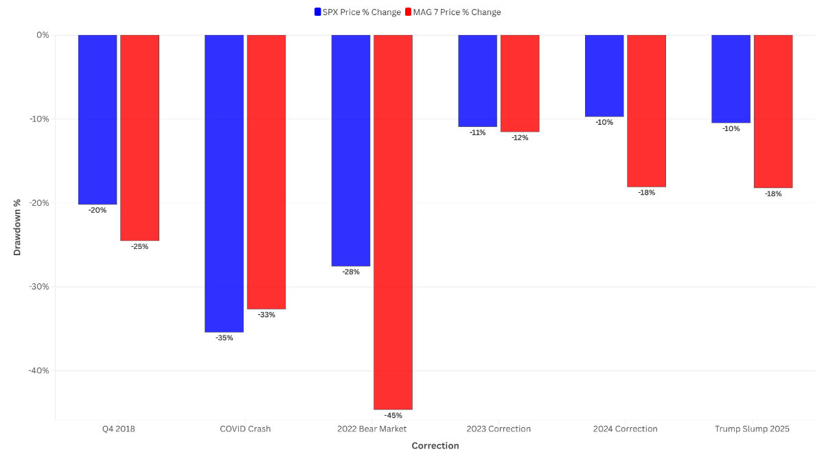 2024 Correction (Jul 16 - Aug 5): Mag 7: -18.1%, SPX: -9.7%.