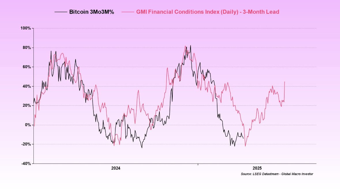 The market liquidity picture is poised to improve in the coming weeks. At the helm of the US Treasury is a macro hedge fund manager, not a clueless central banker. Scott Bessent, who is not one of the tariff hawks, brings a nuanced understanding of liquidity's impact on financial conditions and markets. His strategy focuses on easing the three pillars of financial conditions—dollar strength, interest rates, and oil prices—to stimulate the business cycle. This approach has already driven a sharp loosening in financial conditions, evidenced by Raoul Paul’s GMI Financial Conditions Index and Global Total Liquidity metrics, which are now trending higher. Bitcoin and other risk assets typically follow liquidity trends.