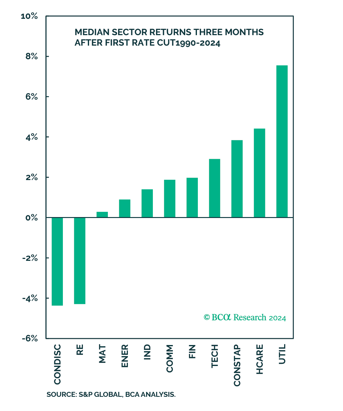 According to BCA Research, the best performing sectors after the Fed has previously cut rates have been defensive sectors such as Utilities, Health Care, and Consumer Staples. Silverlight managed portfolios are currently overweight all three of these defensive sectors. Conversely, sectors that historically lag the market after monetary policy shifts to an easing bias include Consumer Discretionary, Real Estate, and Materials.