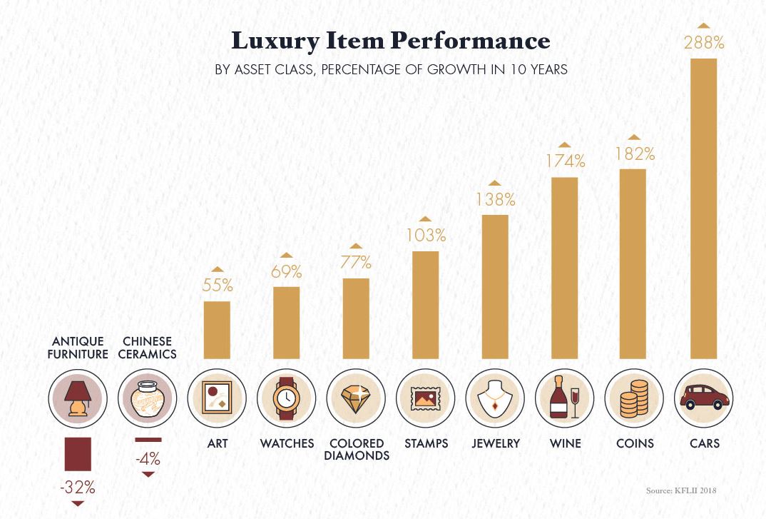 In their paper, Credit Suisse uses the term “treasure assets” to describe investments of passion. These can include a range of beautiful and rare items, typically favored by the ultra-wealthy. If chosen wisely, such assets may provide both a status symbol and a mechanism to preserve wealth.
