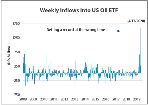 When retail investors recently piled into the biggest Oil ETF (USO), they were trying to nail a bottom in the toughest part of the market. Instead, they got nailed with an expensive lesson, courtesy of Mr. Market.