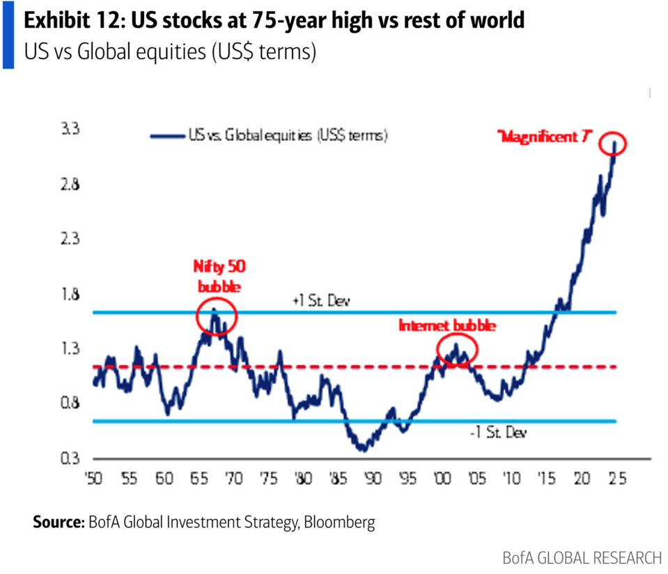 No single country outperforms forever. The US has beat the rest of the world’s stock markets for a very long time, and this year is likely to be a turning point.