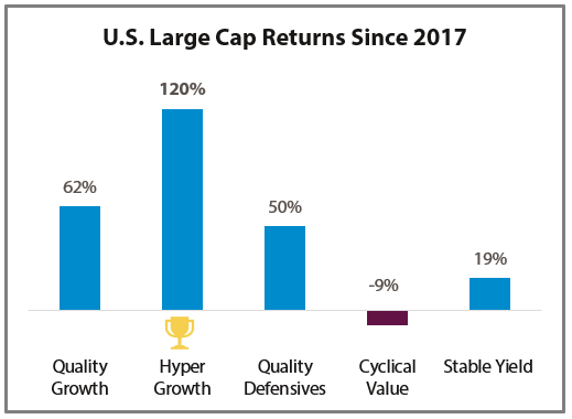 For example, portfolios I manage for clients have a natural tilt away from Hyper Growth, which is a byproduct of our investment process. The “core” of our portfolio is comprised of high quality firms we think offer attractive relative value.