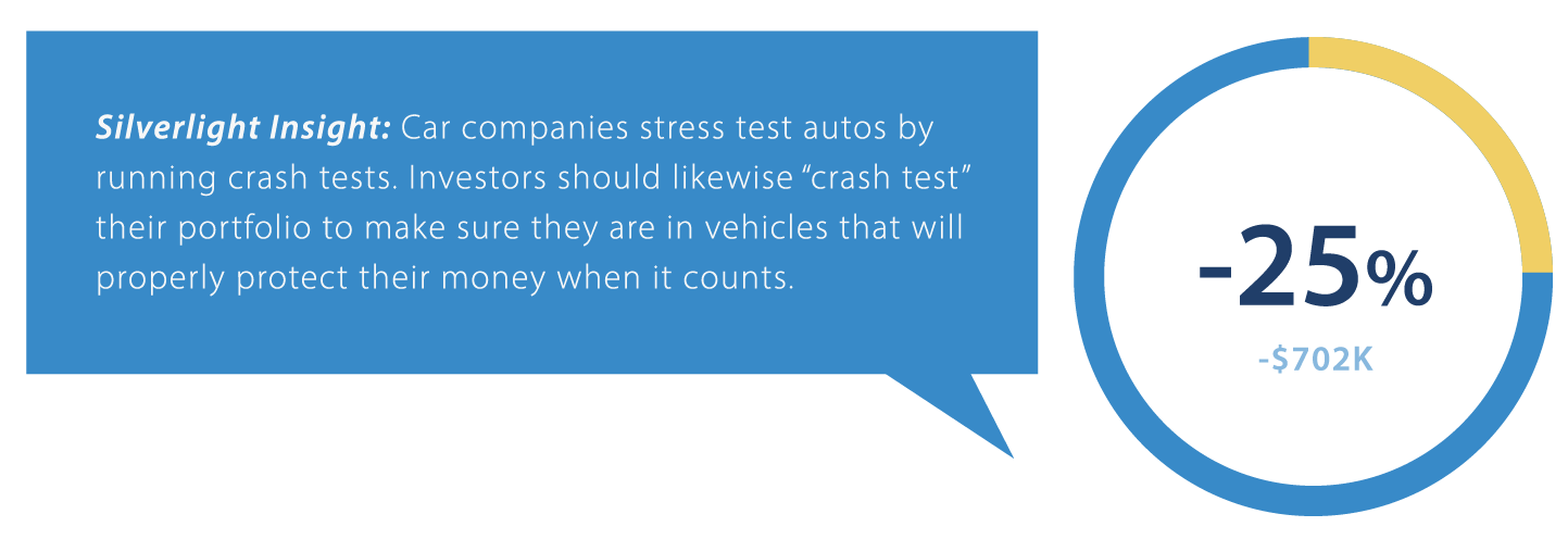 Next, we "stress test" your current portfolio to see how exposed you are to various downside/risk scenarios. We can model historical scenarios (like the 1987 crash, the 2000 tech bubble, etc.) to see how your current portfolio would perform in those environments. We can also model any future scenarios you are pondering.